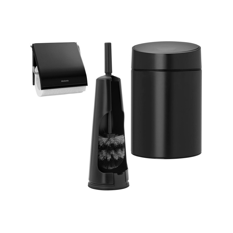סט לשירותים עם פח נתלה Brabantia: פח סלייד נתלה 5 ליטר + מברשת אסלה קונית + מתקן קיר לנייר טואלט ברבנטיה