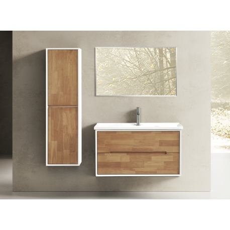 ארון אמבטיה נורמה מעץ אלון טבעי בעל כיור אינטגרלי.