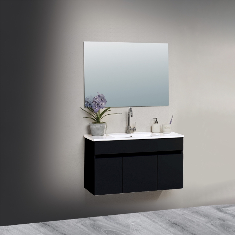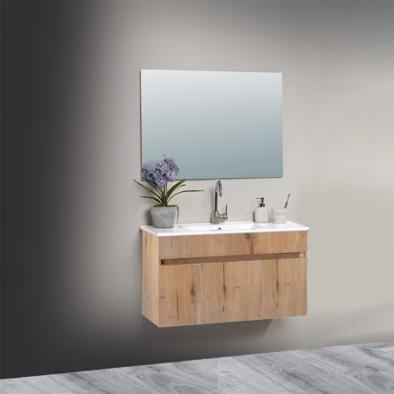 ארון פואמה בעל כיור משטח ומראה מרחפת.