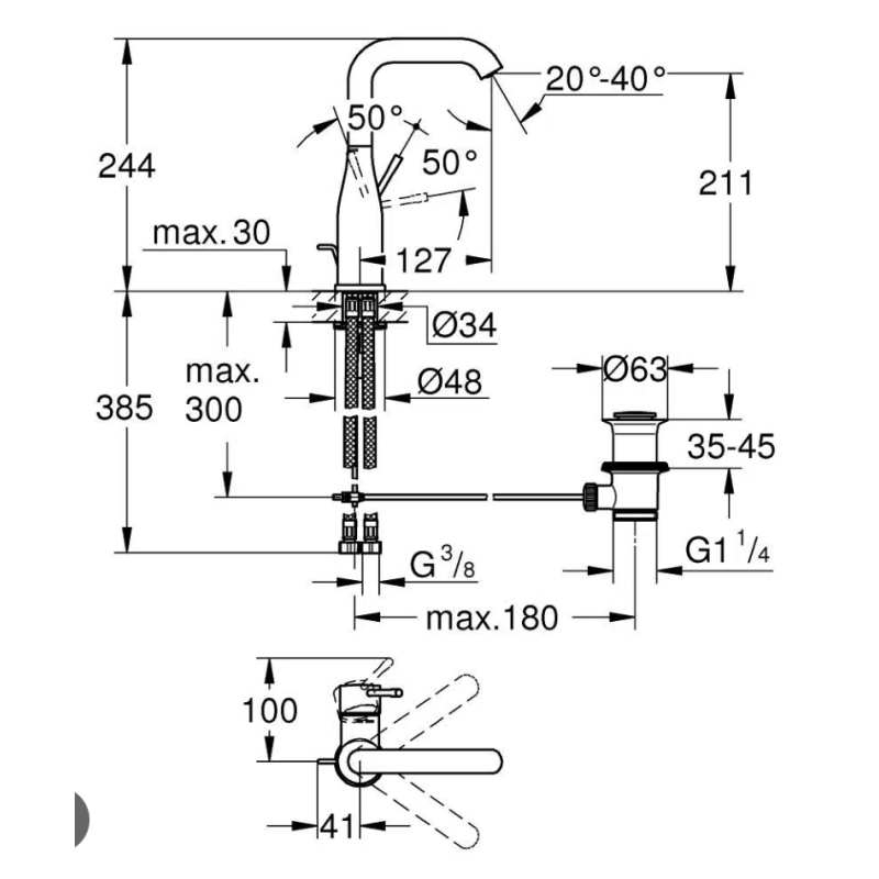ברז רחצה מבית גרואה | דגם 32628001 / 24174000 של גרואה GROHE ESSENCE.