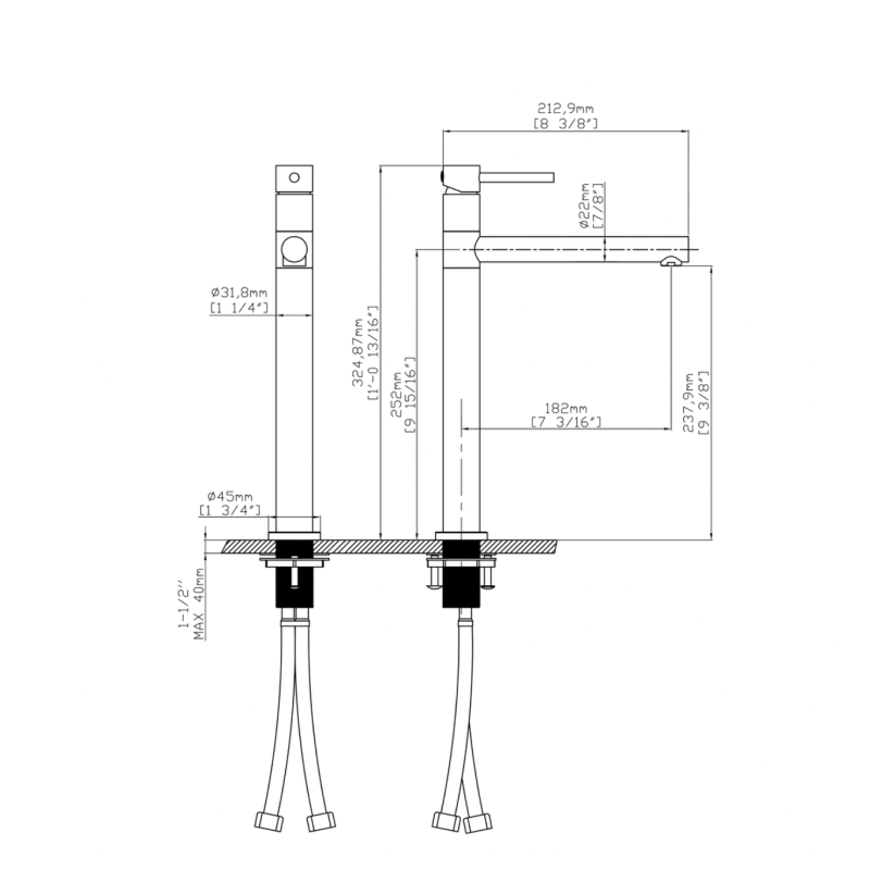 ברז גבוה לכיור מונח B205B