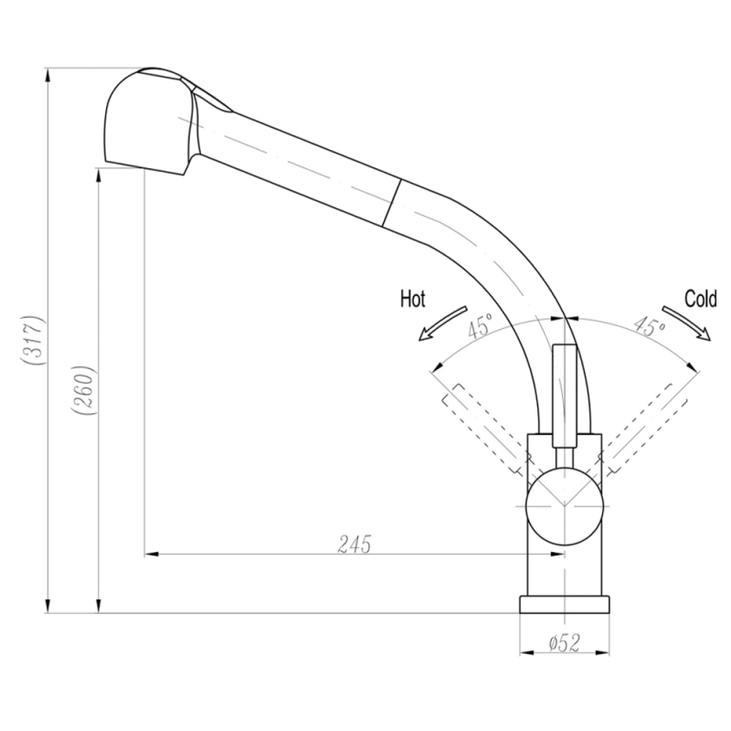 • גובה הברז: 317 מ״מ