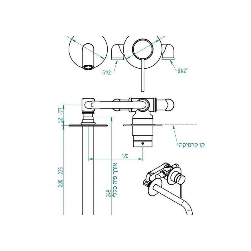 סט כיסויים פיה ארוכה וידית לברז קיר דגם 308202