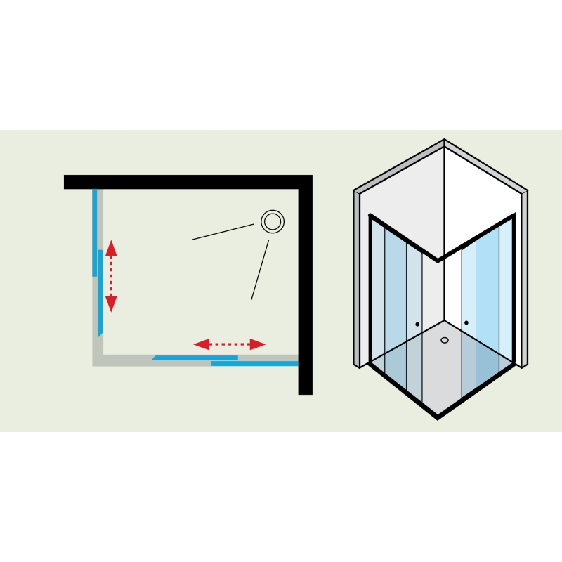 מושלם לחדרי מקלחת קטנים לחסכון במקום (ללא צורך לפנות מקום לדלתות נפתחות. ניתן להתקנה בצמוד לארונות / אסלות / כיורים)