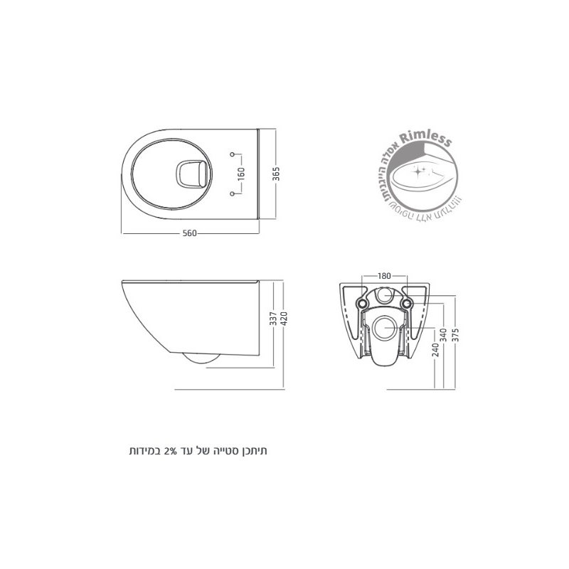 אסלה תלויה גאליס 55 רימלס + מושב נשלף 55 Wall Hung WC | מבית חמת.