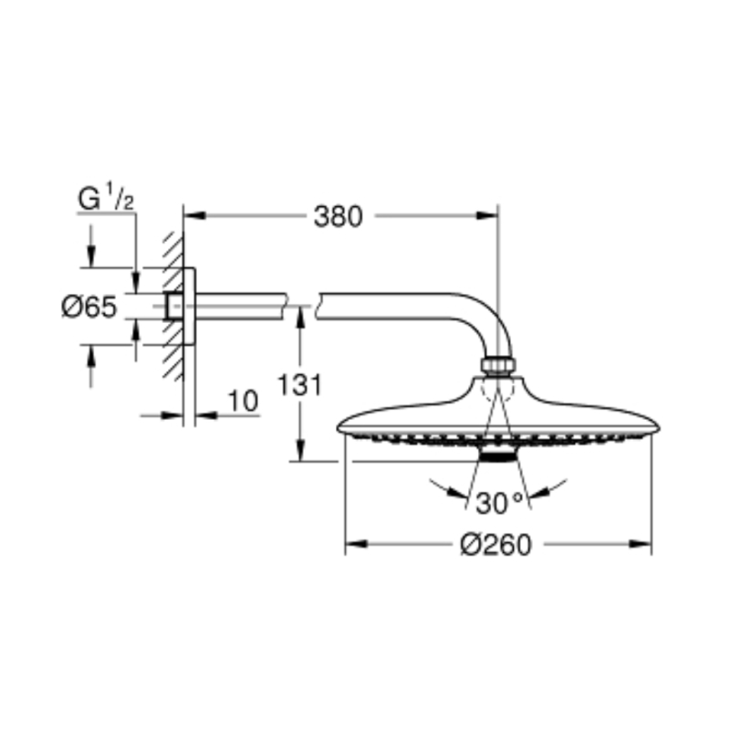 ראש מקלחת עגול עם זרוע מבית גרואה | דגם 26459000 Euphoria.