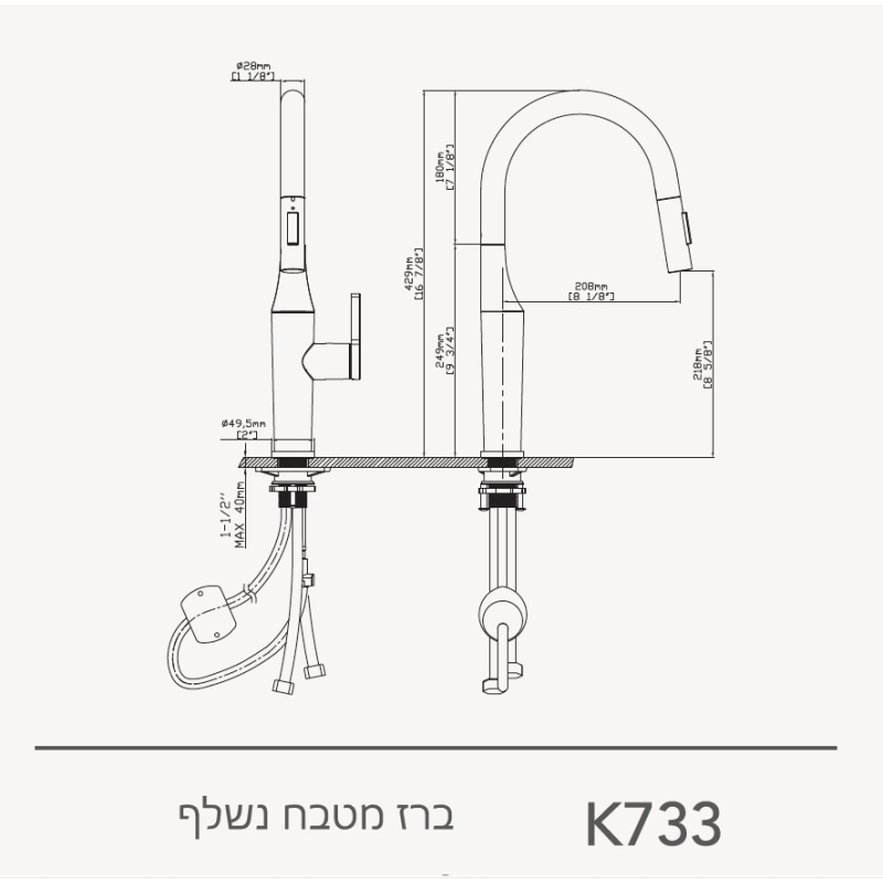 • גובה הברז: 429 מ"מ