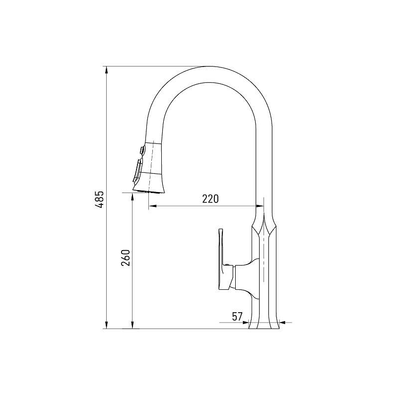 • גובה הברז: 485 מ"מ