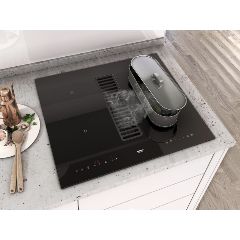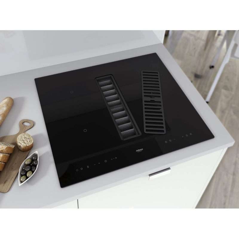 כיריים מרובעות אינדוקציה מבית המותג האיטלקי Airforce, ברוחב ואורך 600 מ״מ, זכוכית קרמית מחוסמת שחורה.