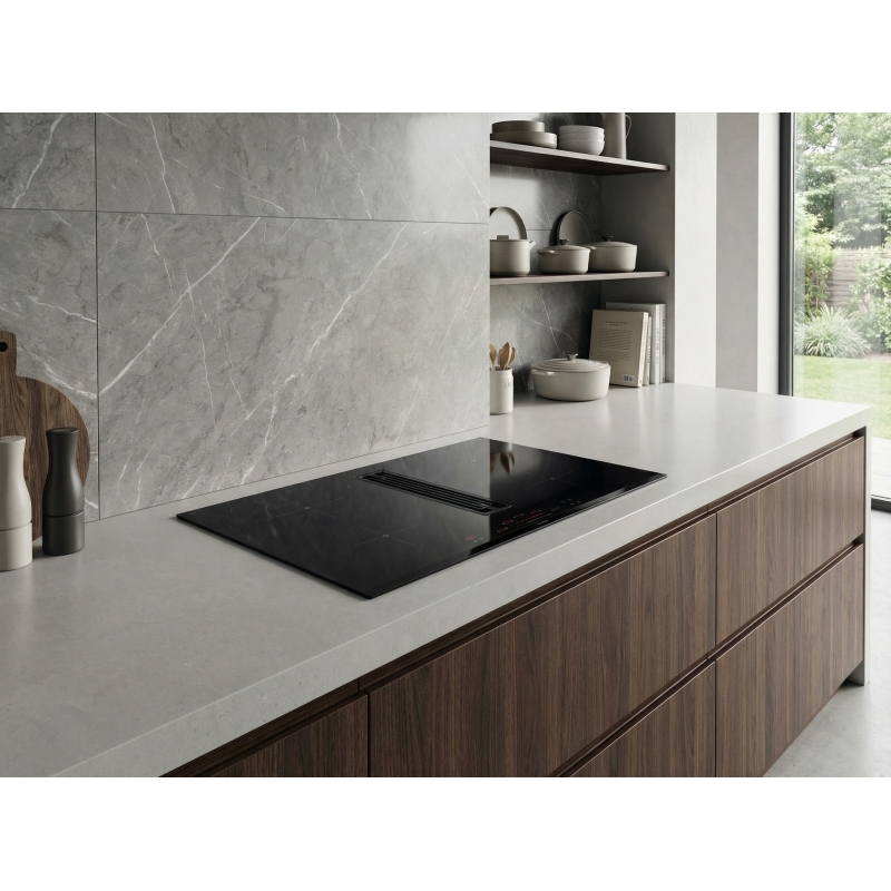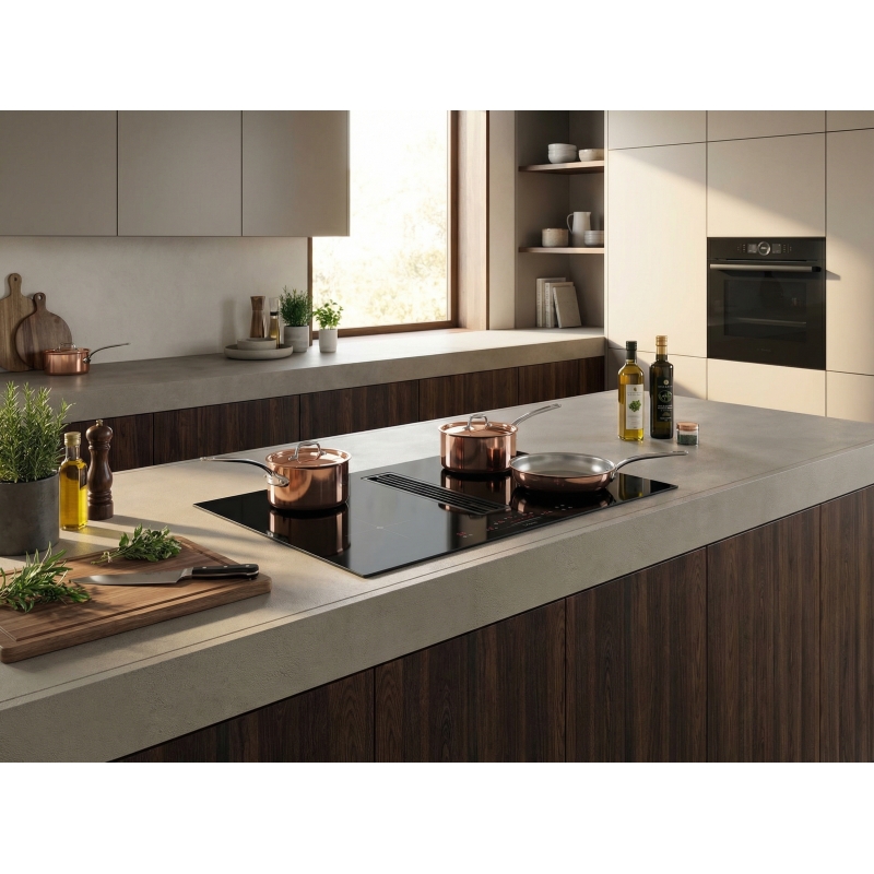 הכיריים החשמליות INNOVA ARTIS PRIMA 83F הן כיריים חכמות בעלות קולט אדים עוצמתי במרכז.