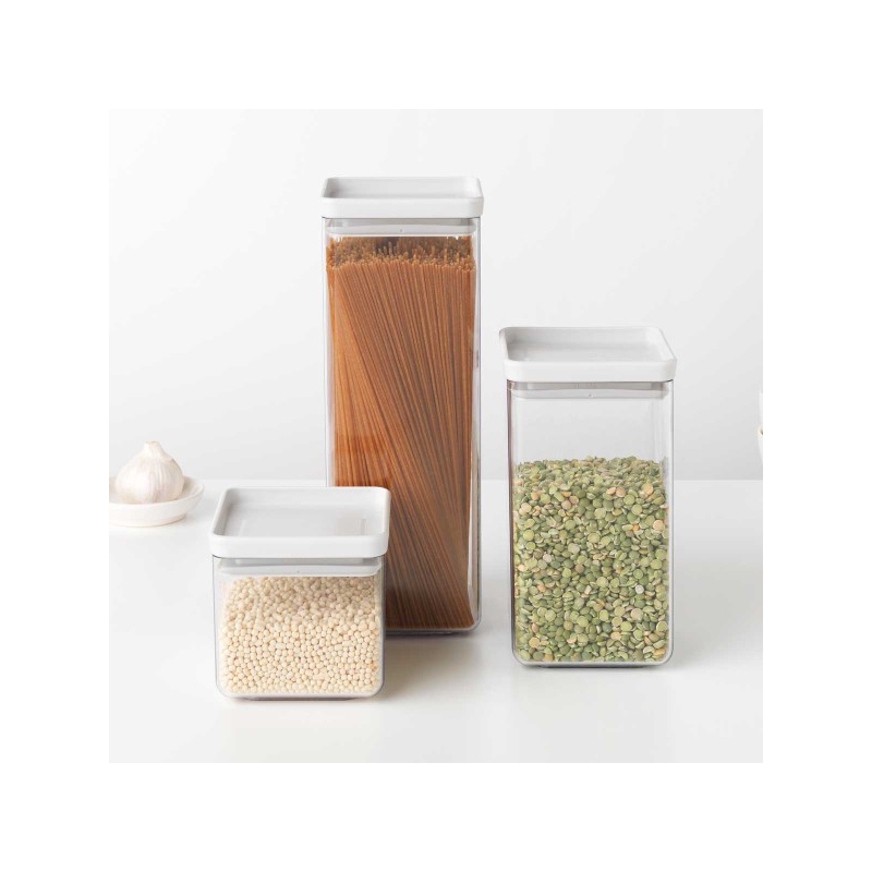 סט 3 מיכלי אחסון פלסטיק שקוף 0.7 + 1.6 + 2.5 ליטר עם מכסה אפור בהיר Brabantia - ללא BPA